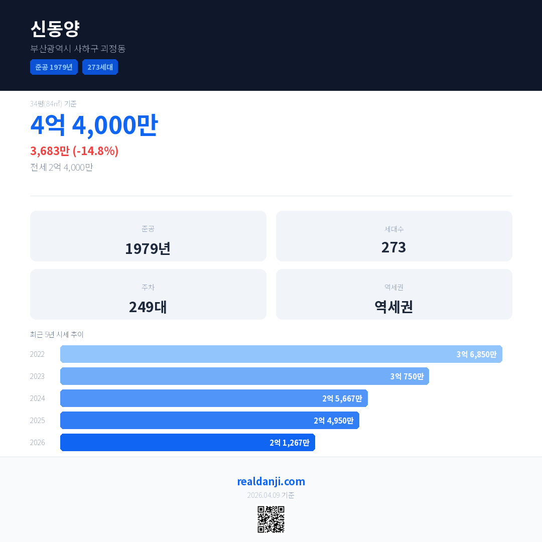 신동양 최근 거래가는 4억 4,000만입니다. (2026-03)