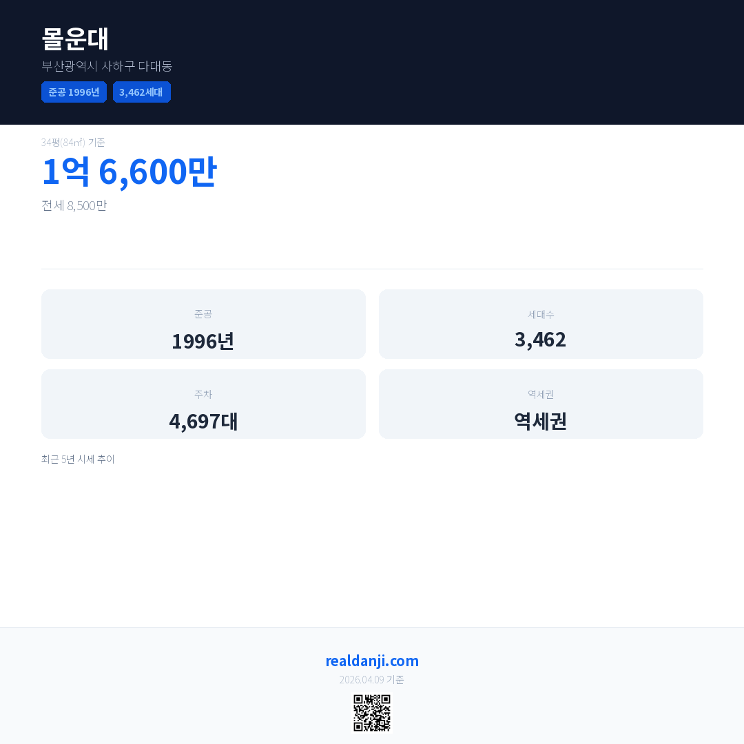 몰운대 최근 거래가는 1억 6,600만입니다. (2026-03)