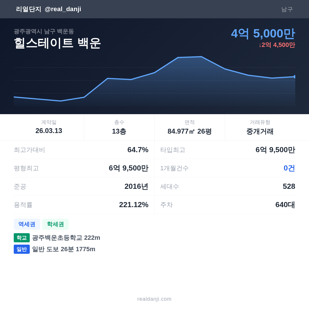 힐스테이트 백운 최근 거래가는 6억 9,500만입니다. (2026-03)