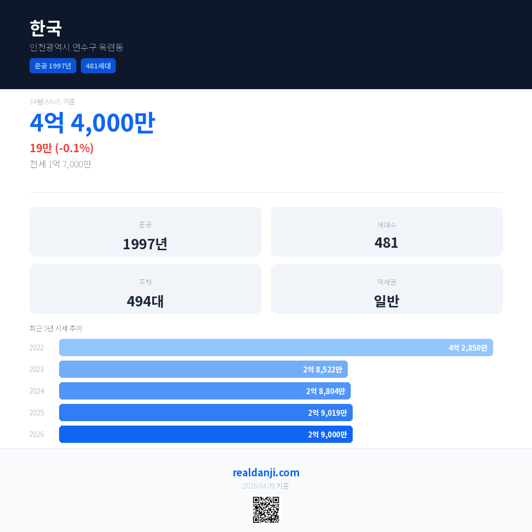 한국 최근 거래가는 4억 4,000만입니다. (2026-04)