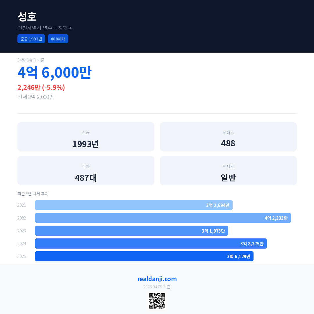 성호 최근 거래가는 4억 6,000만입니다. (2025-12)