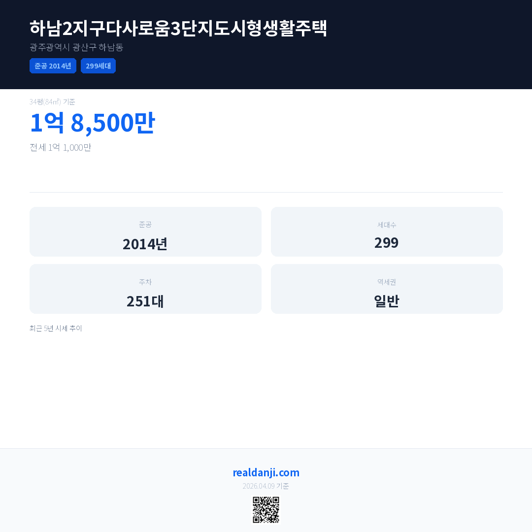 하남2지구다사로움3단지도시형생활주택 최근 거래가는 1억 8,500만입니다. (2026-04)