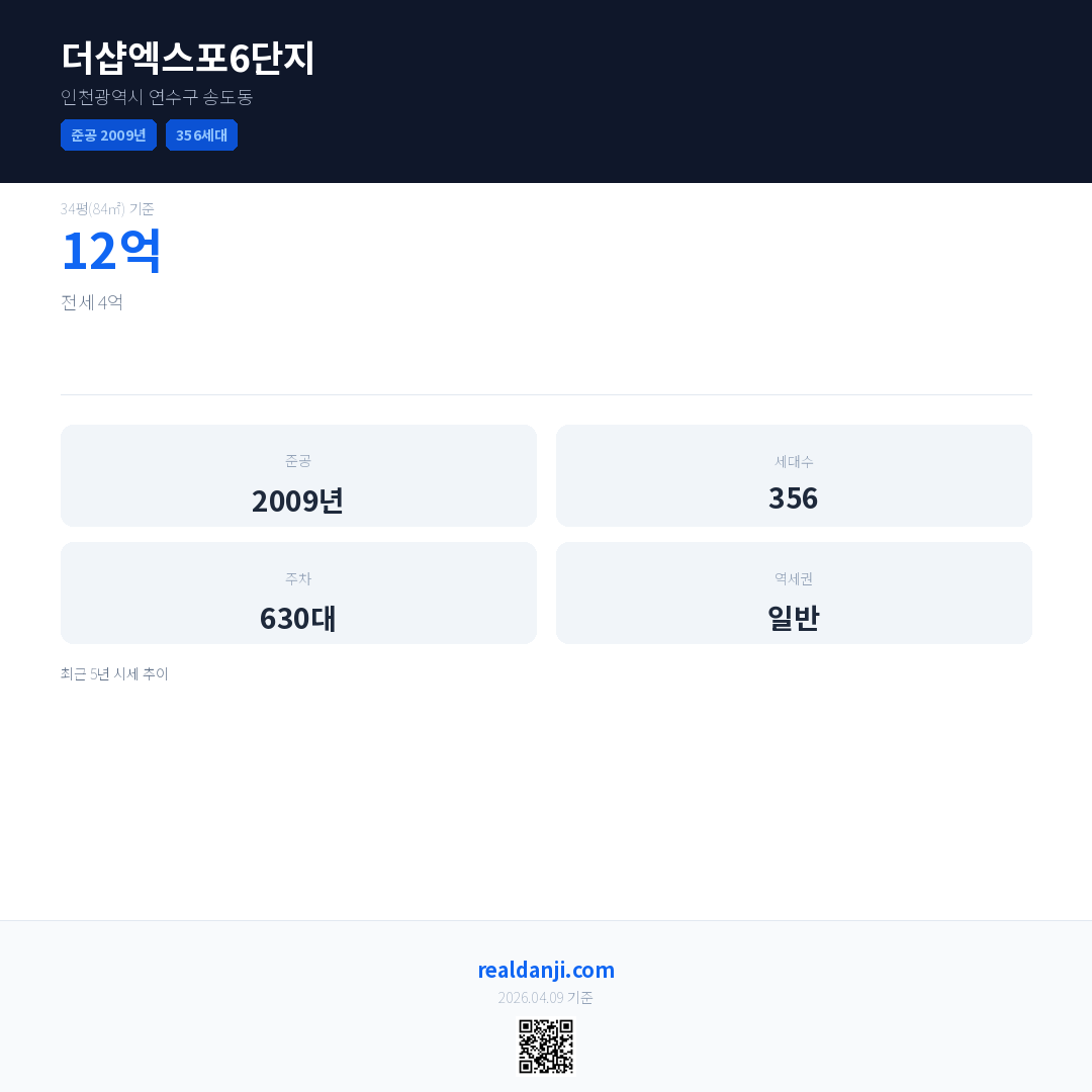 더샵엑스포6단지 최근 거래가는 12억입니다. (2026-04)