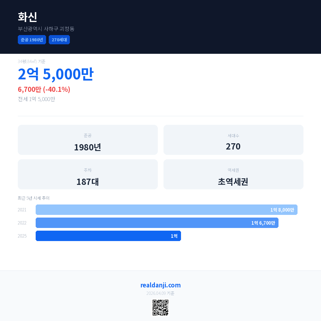 화신 국민평형 기준 2025년 평균 거래가는 1억으로, 전년 대비 40.1% 하락 했습니다.