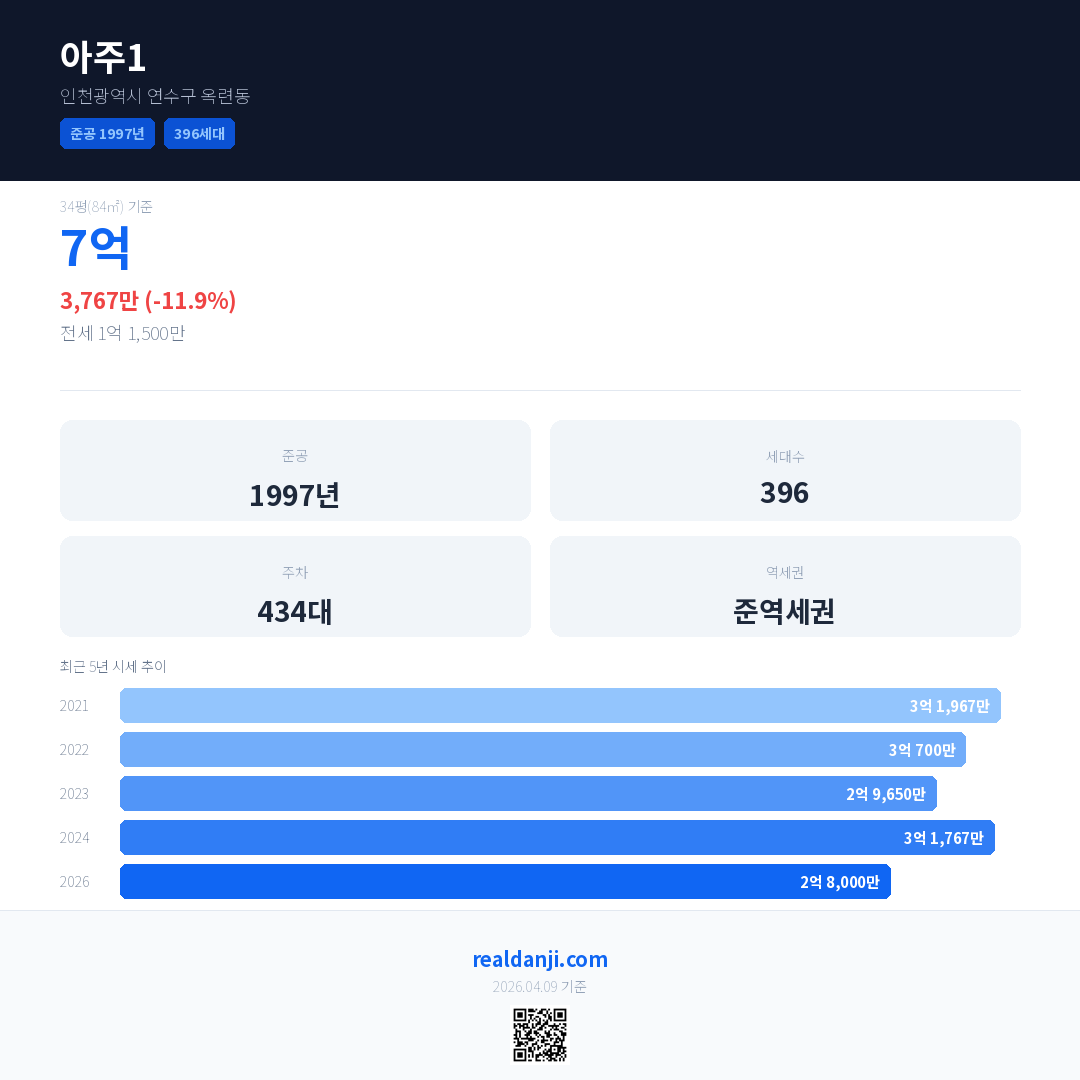 아주1 최근 거래가는 7억입니다. (2026-02)
