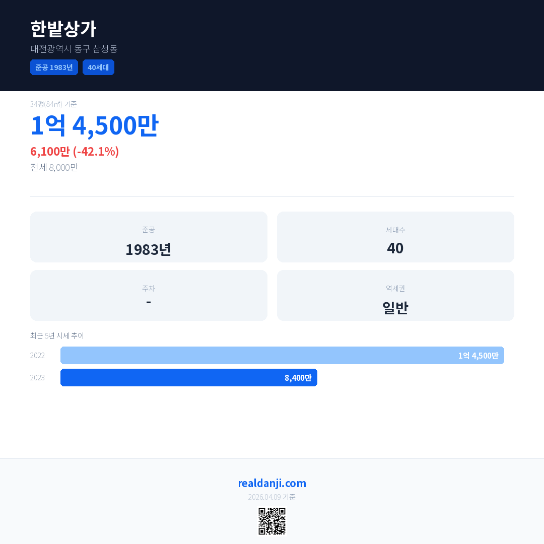한밭상가 최근 거래가는 1억 4,500만입니다. (2023-08)