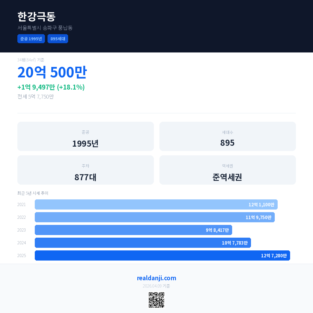 한강극동 최근 거래가는 20억 500만입니다. (2026-03)