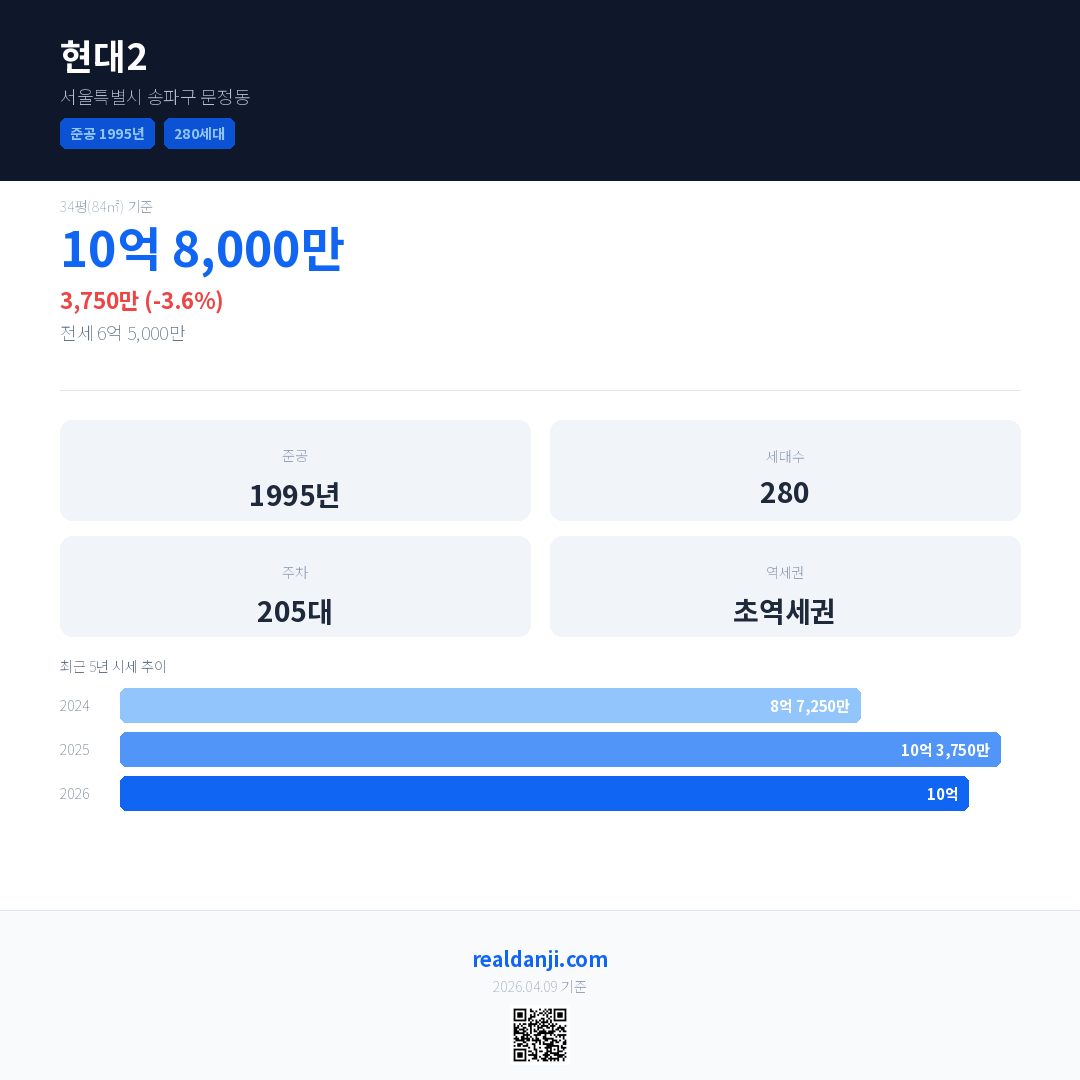 현대2 최근 거래가는 10억입니다. (2026-03)