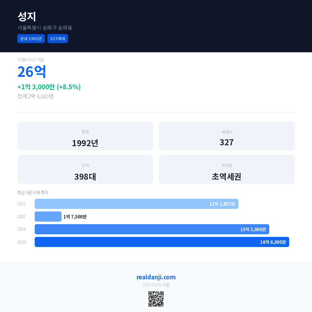 성지 최근 거래가는 1억 6,000만입니다. (2026-03)