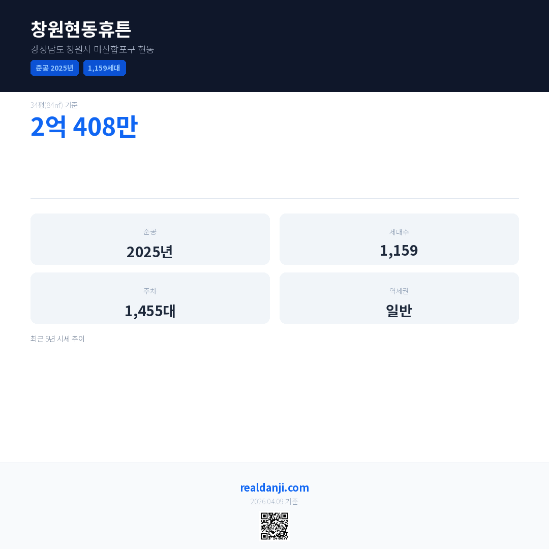 창원현동휴튼 최근 거래가는 2억 408만입니다. (2024-01)