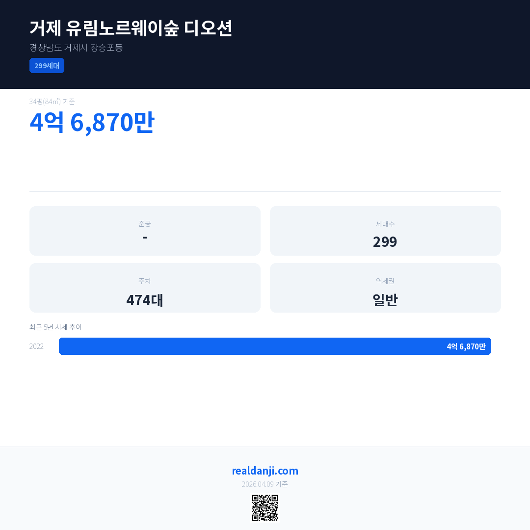 거제 유림노르웨이숲 디오션 최근 거래가는 4억 6,870만입니다. (2022-09)