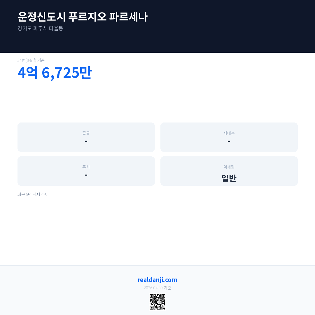 운정신도시 푸르지오 파르세나 최근 거래가는 4억 6,725만입니다. (2022-10)