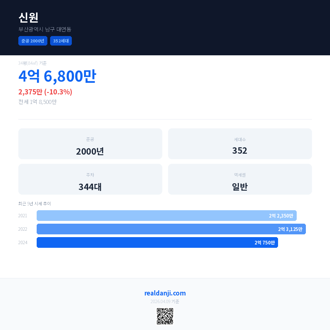 신원 최근 거래가는 4억 6,800만입니다. (2026-04)