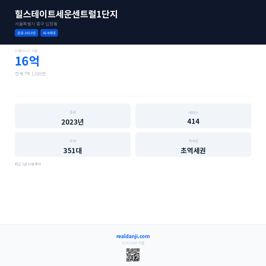힐스테이트세운센트럴1단지 최근 거래가는 16억입니다. (2026-02)