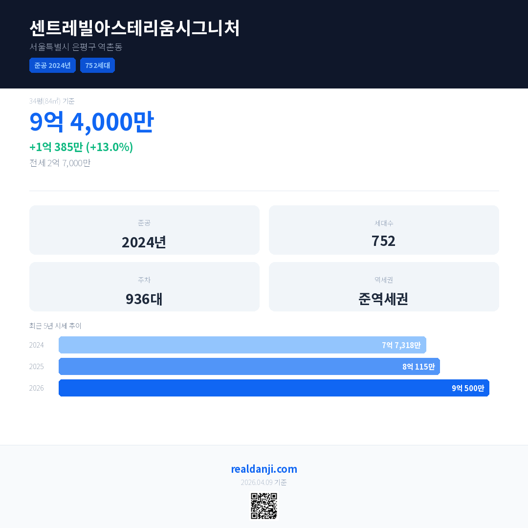 센트레빌아스테리움시그니처 최근 거래가는 9억 4,000만입니다. (2026-03)