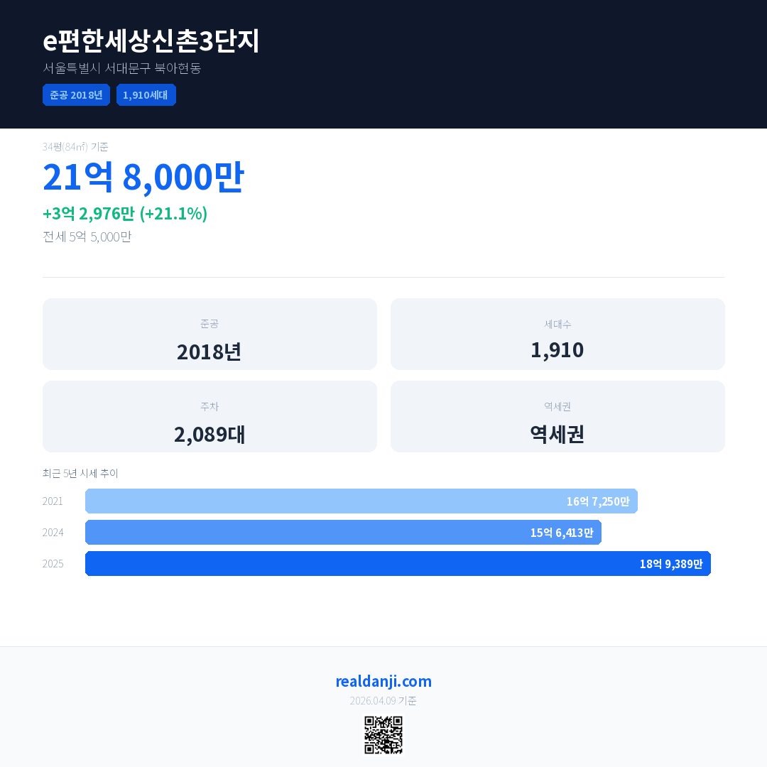e편한세상신촌3단지 최근 거래가는 21억 8,000만입니다. (2026-02)