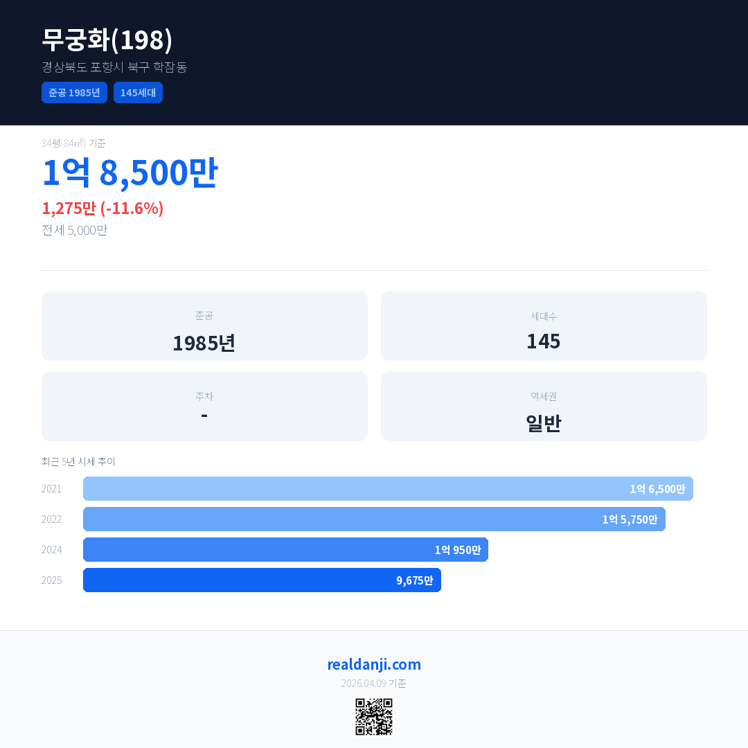 무궁화(198) 최근 거래가는 1억 8,500만입니다. (2025-10)