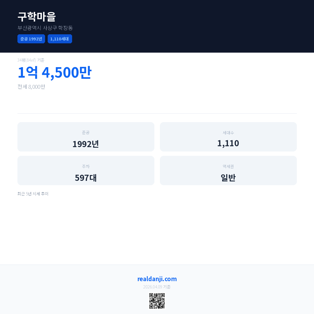 구학마을 최근 거래가는 1억 4,500만입니다. (2026-03)