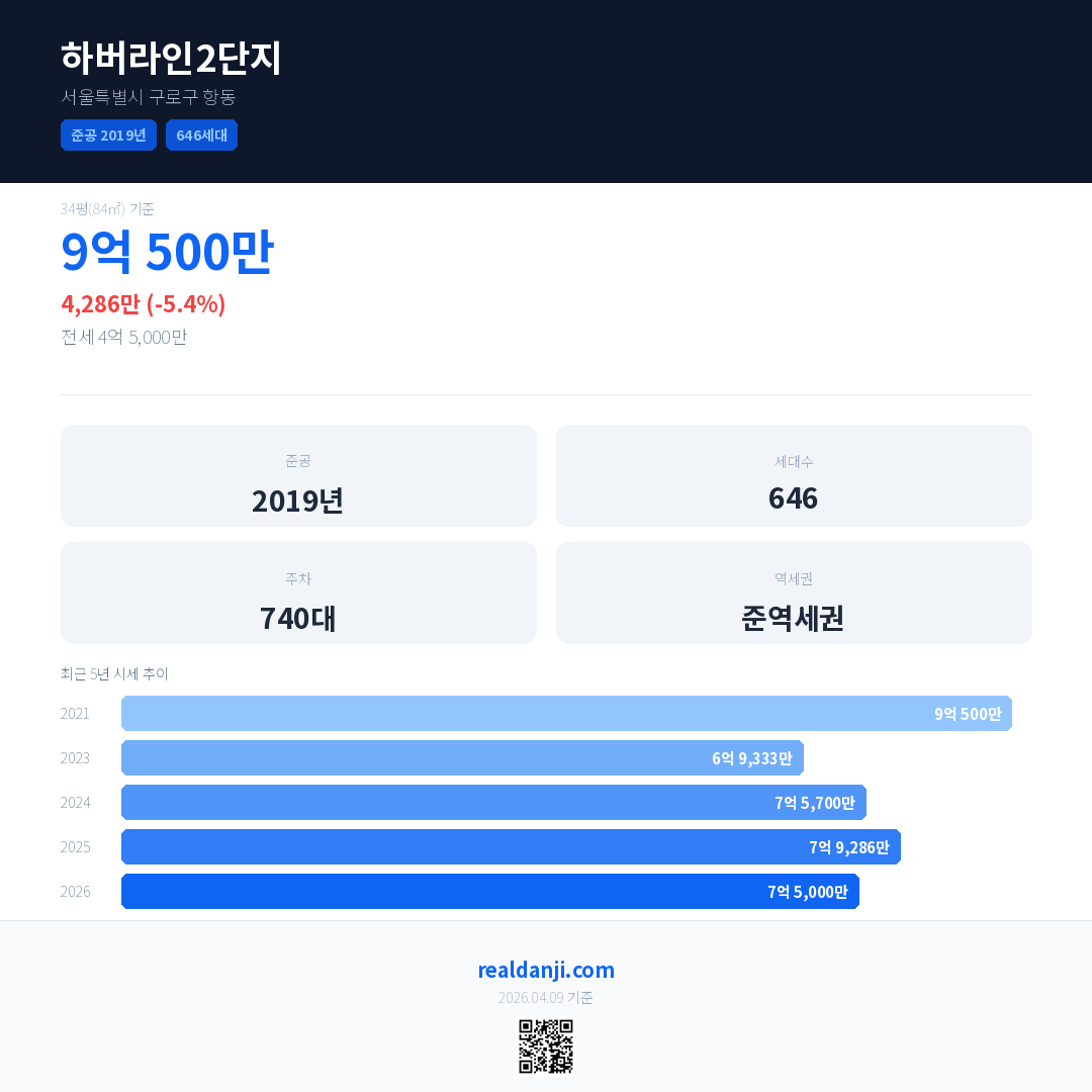 하버라인2단지 최근 거래가는 9억 500만입니다. (2026-03)