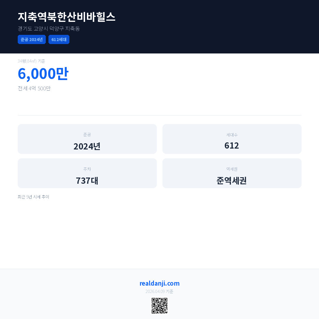 지축역북한산비바힐스은(는) 2024년에 준공되었으며, 현재 2년차입니다. 총 612세대 규모입니다.