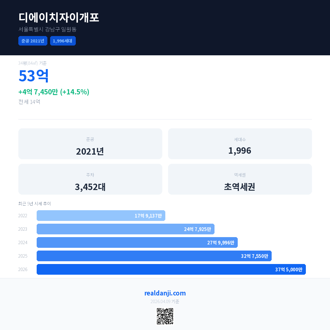 디에이치자이개포 최근 거래가는 53억입니다. (2026-01)