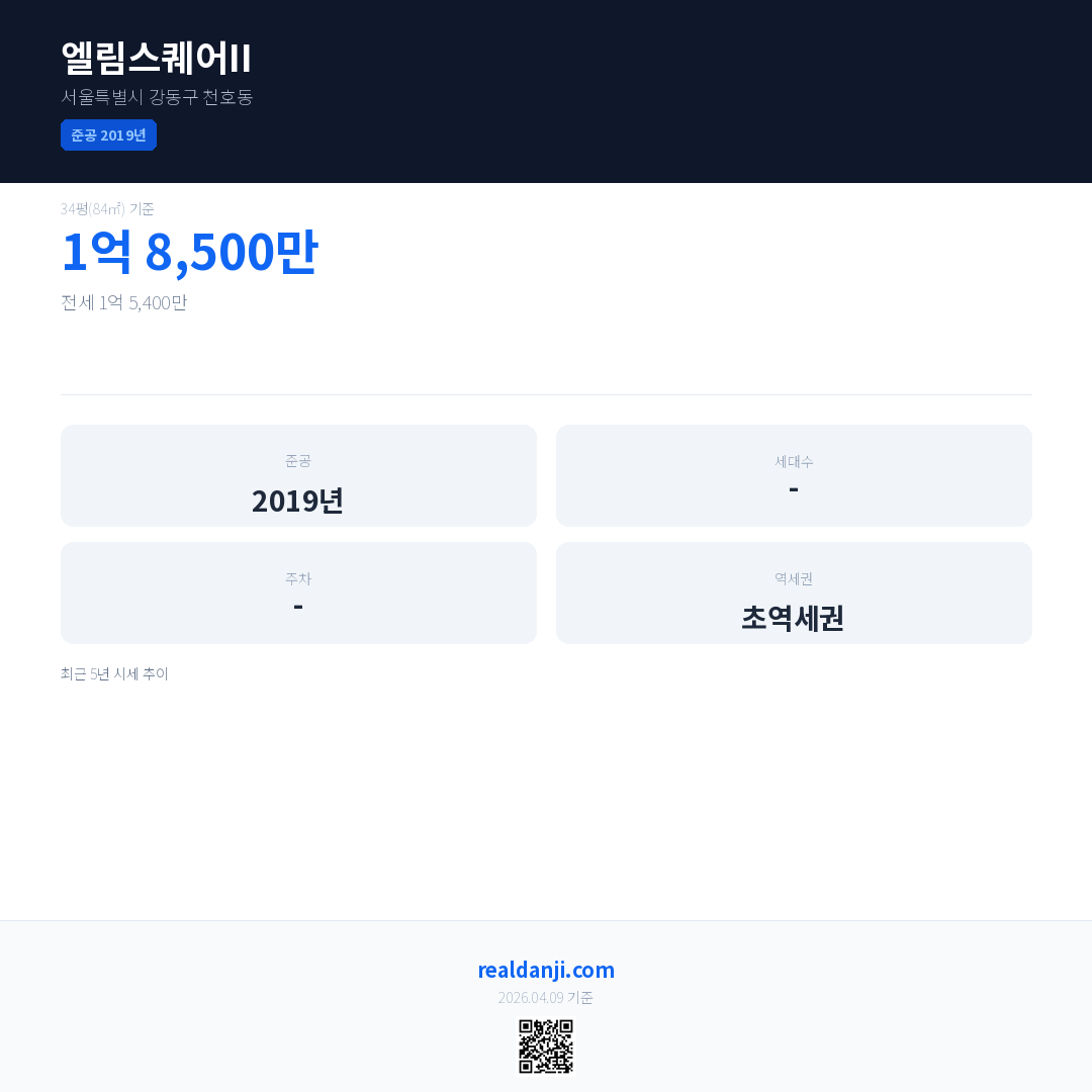 엘림스퀘어II 최근 거래가는 1억 3,000만입니다. (2026-03)