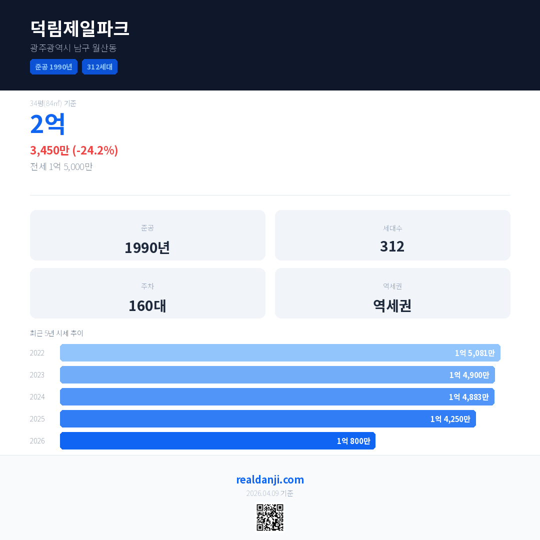 덕림제일파크 최근 거래가는 2억입니다. (2026-02)