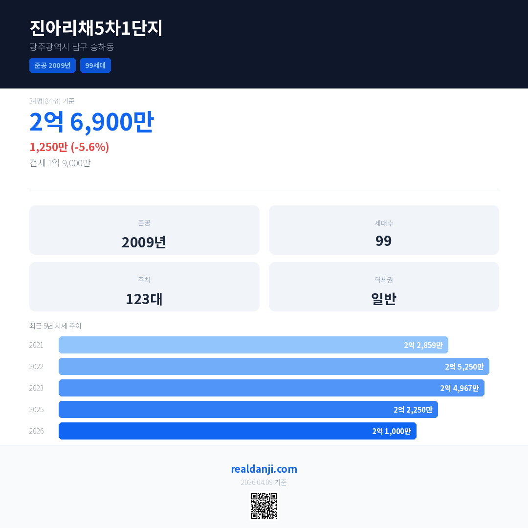 진아리채5차1단지 최근 거래가는 2억 6,900만입니다. (2026-01)