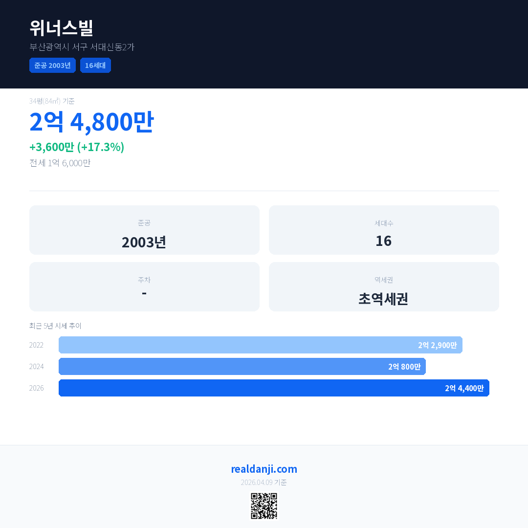 위너스빌 최근 거래가는 2억 4,800만입니다. (2026-02)