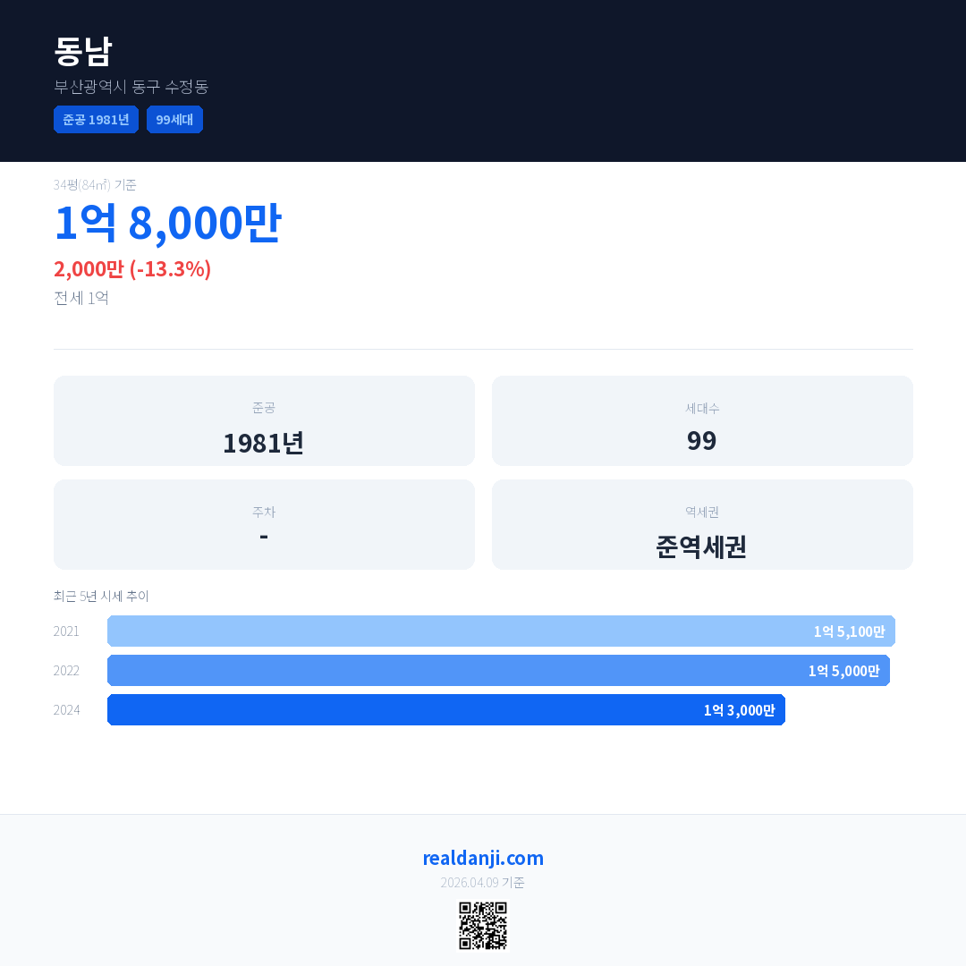 동남 최근 거래가는 1억 8,000만입니다. (2024-05)
