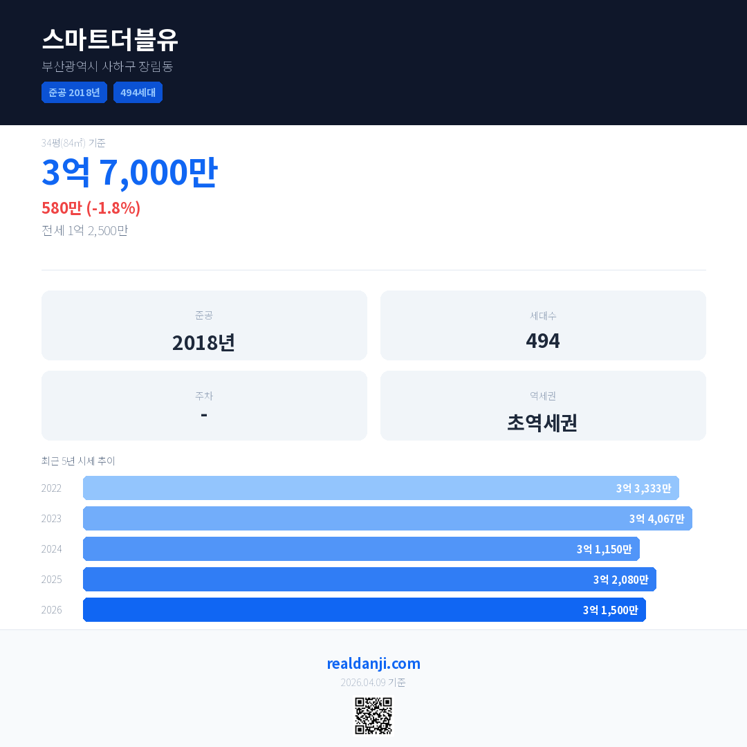 스마트더블유 최근 거래가는 3억 7,000만입니다. (2026-03)