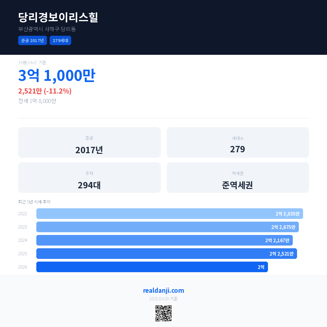 당리경보이리스힐 최근 거래가는 3억 1,000만입니다. (2026-02)