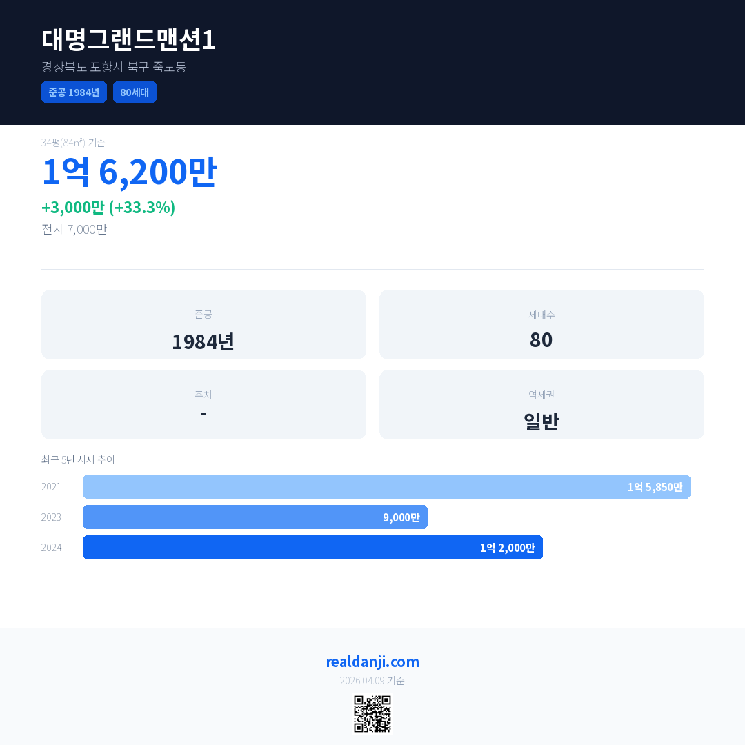 대명그랜드맨션1 최근 거래가는 1억 6,200만입니다. (2025-05)