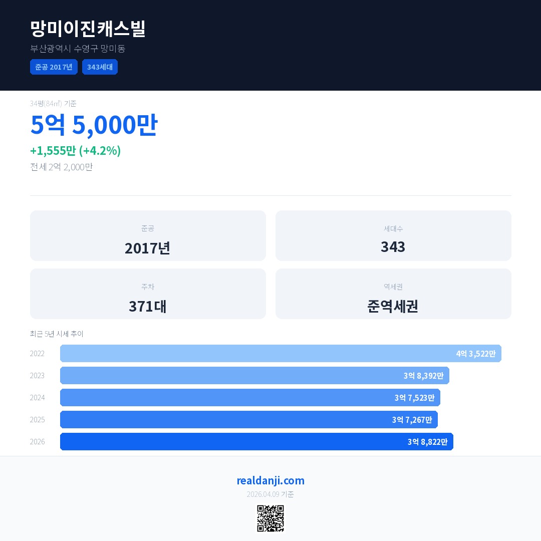 망미이진캐스빌 최근 거래가는 5억 5,000만입니다. (2026-03)