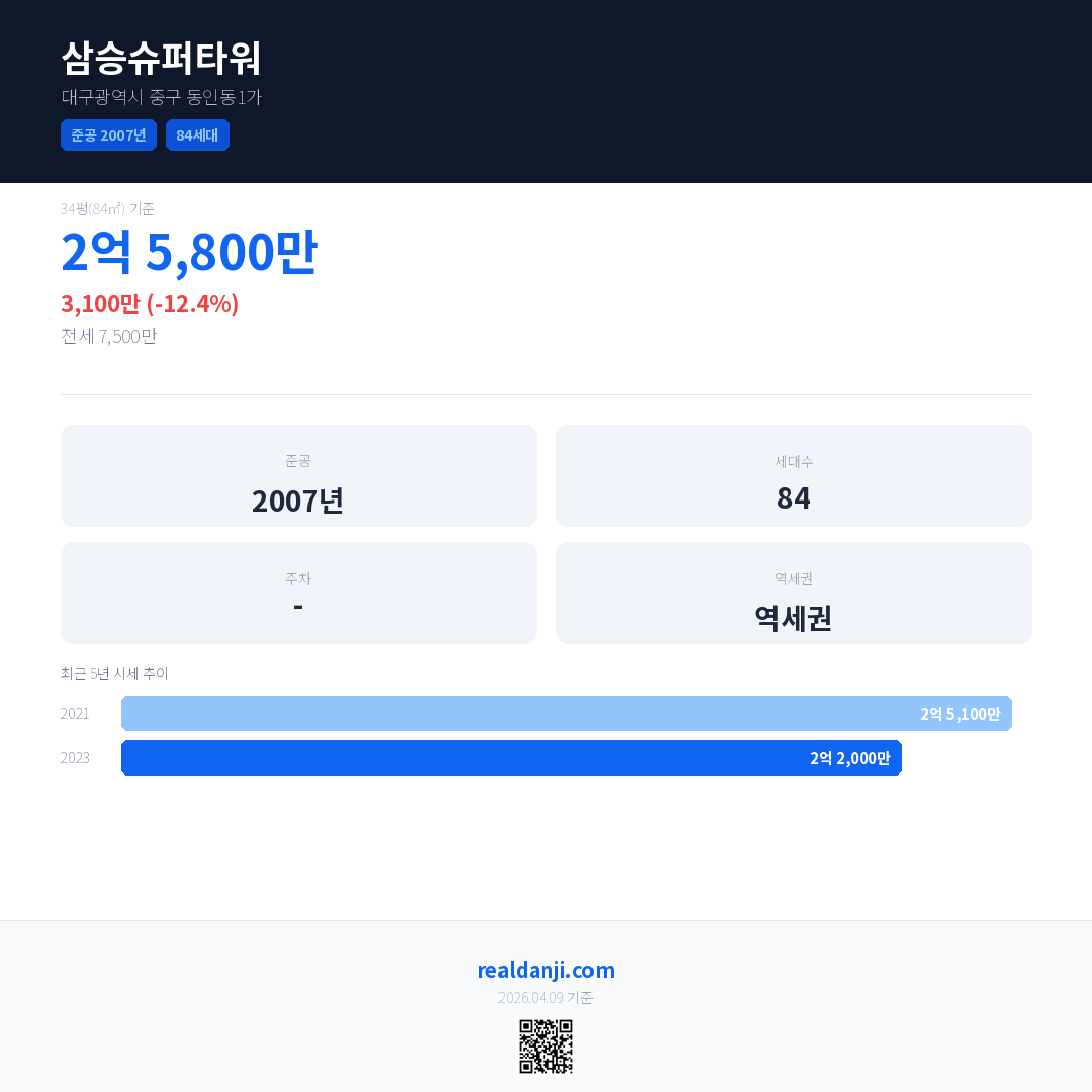 삼승슈퍼타워 최근 거래가는 2억 5,800만입니다. (2023-02)
