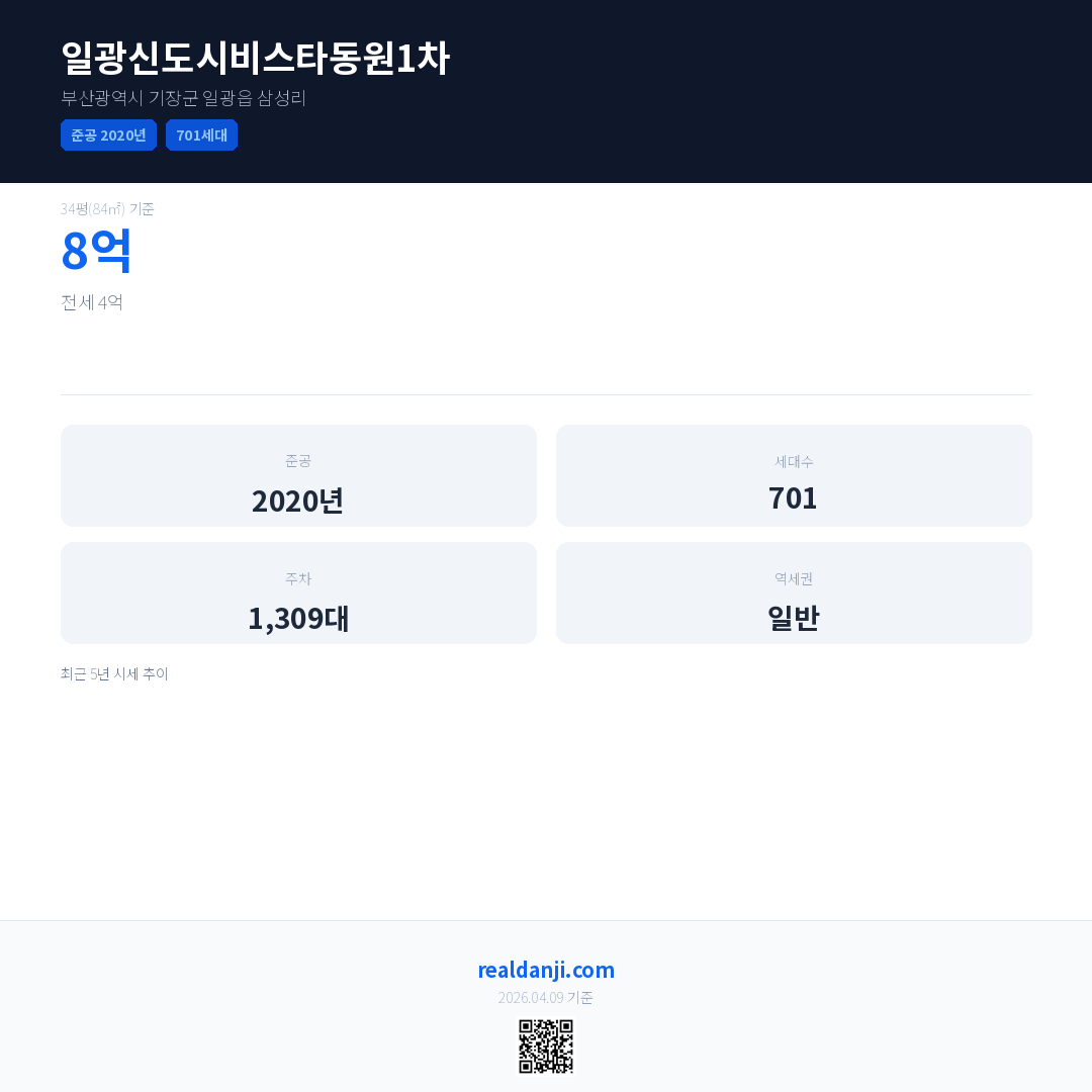 일광신도시비스타동원1차 최근 거래가는 8억입니다. (2026-03)