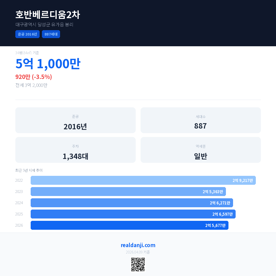 호반베르디움2차 최근 거래가는 5억 1,000만입니다. (2026-03)
