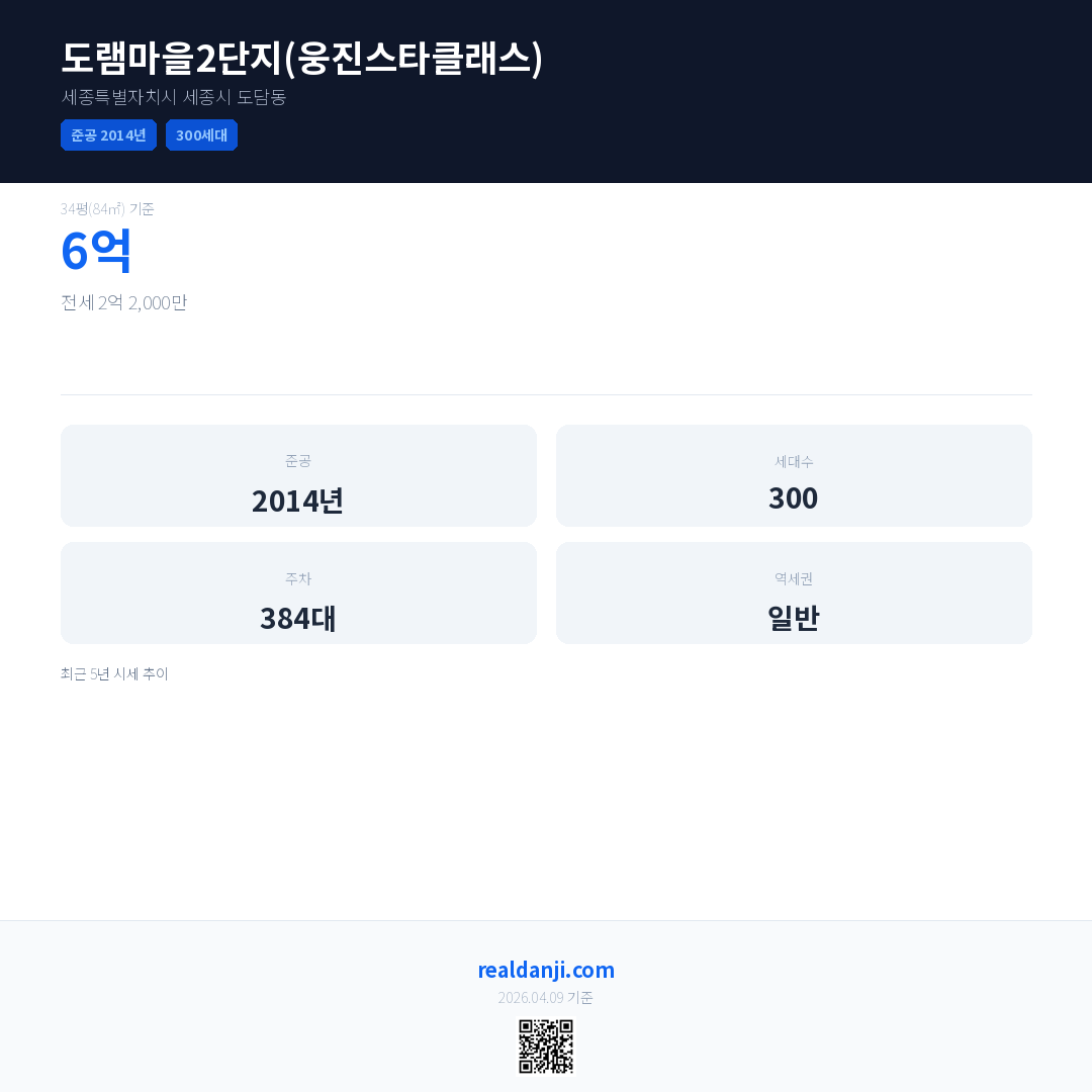 도램마을2단지(웅진스타클래스) 최근 거래가는 4억 2,000만입니다. (2026-03)