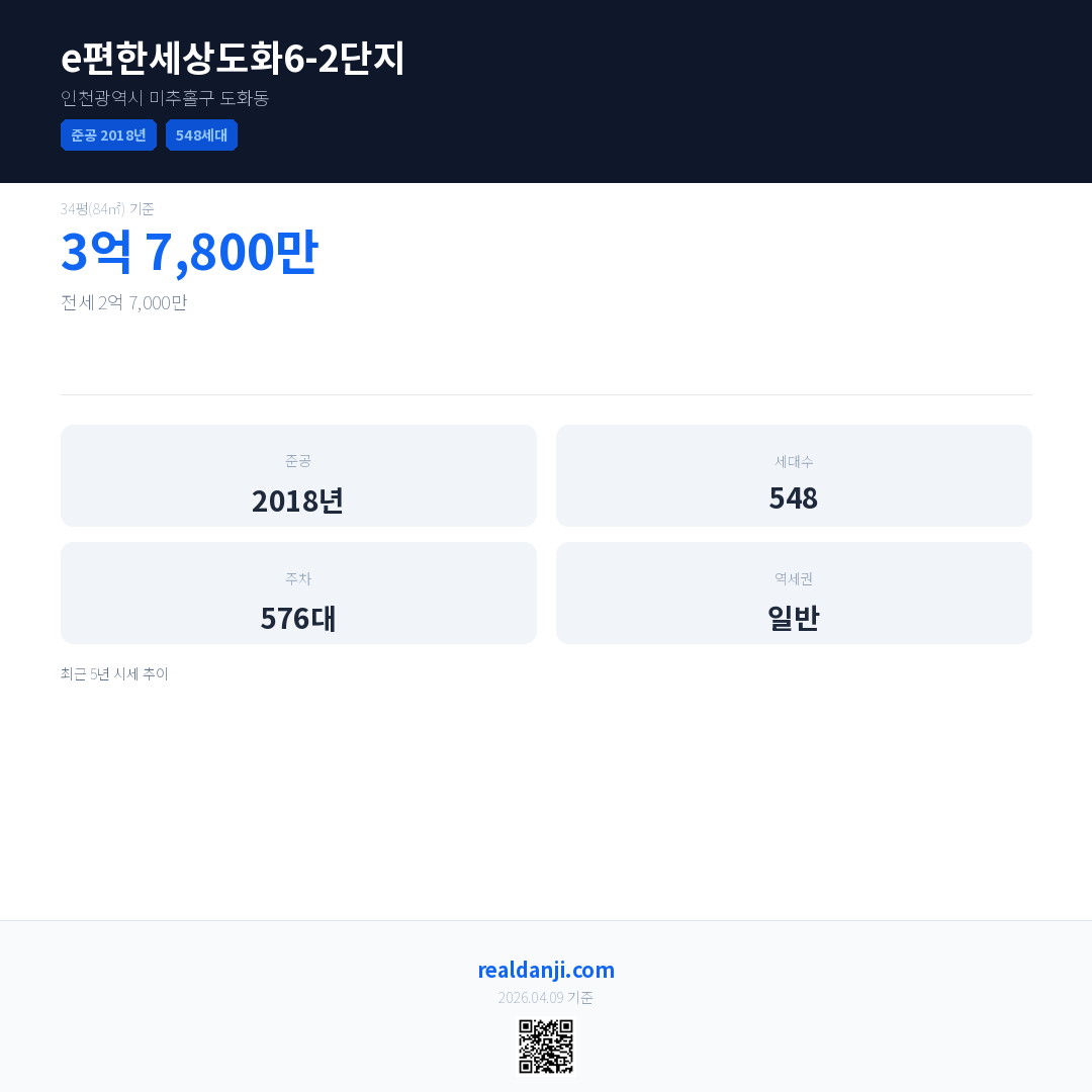 e편한세상도화6-2단지 최근 거래가는 3억 7,800만입니다. (2026-03)