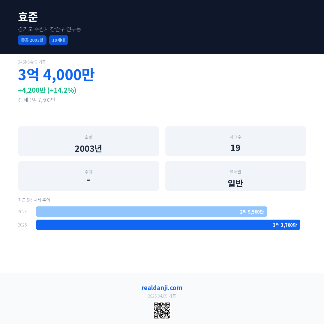 효준 최근 거래가는 3억 4,000만입니다. (2025-08)