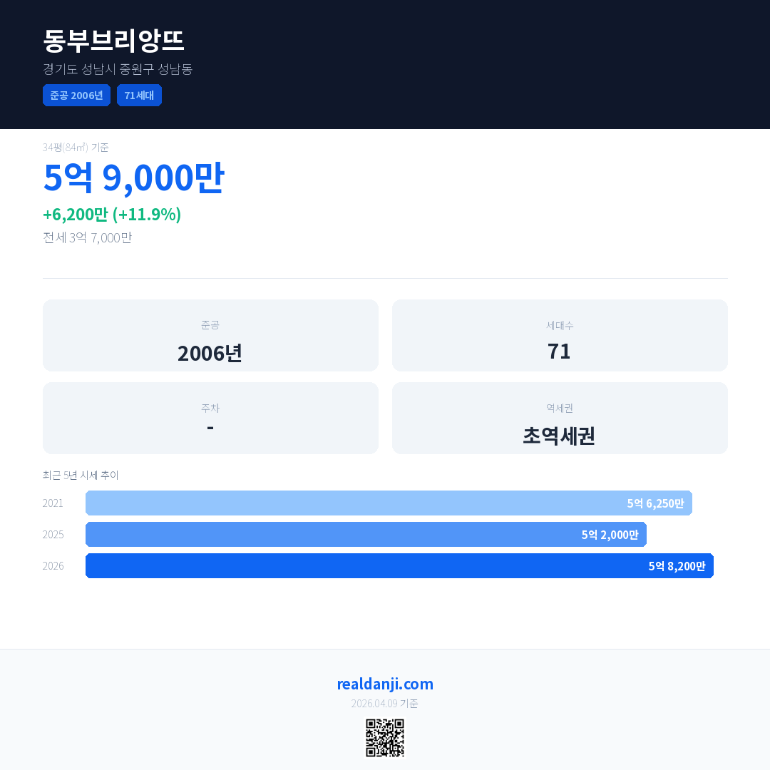 동부브리앙뜨 최근 거래가는 5억 9,000만입니다. (2026-02)