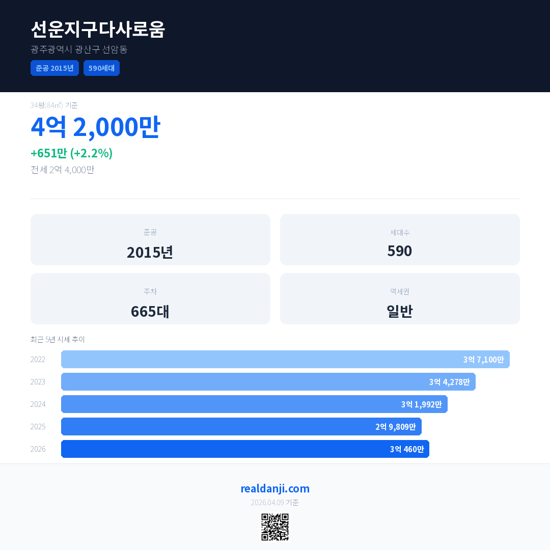 선운지구다사로움 최근 거래가는 4억 2,000만입니다. (2026-03)
