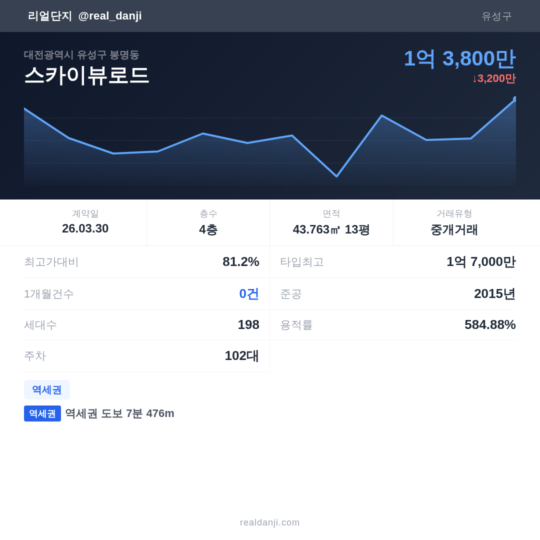 | 2026.03.30 | 44㎡ | 4층 | 1억 3,800만 |