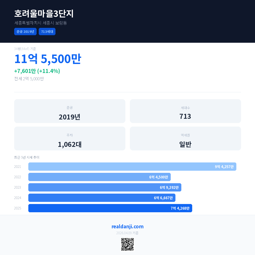 호려울마을3단지 최근 거래가는 11억 5,500만입니다. (2026-03)