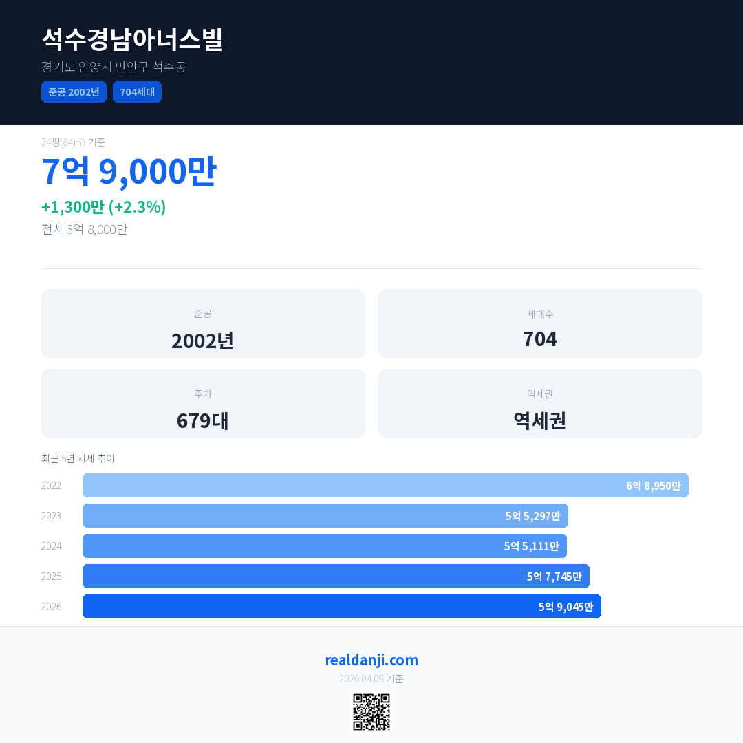 석수경남아너스빌 최근 거래가는 7억 9,000만입니다. (2026-03)