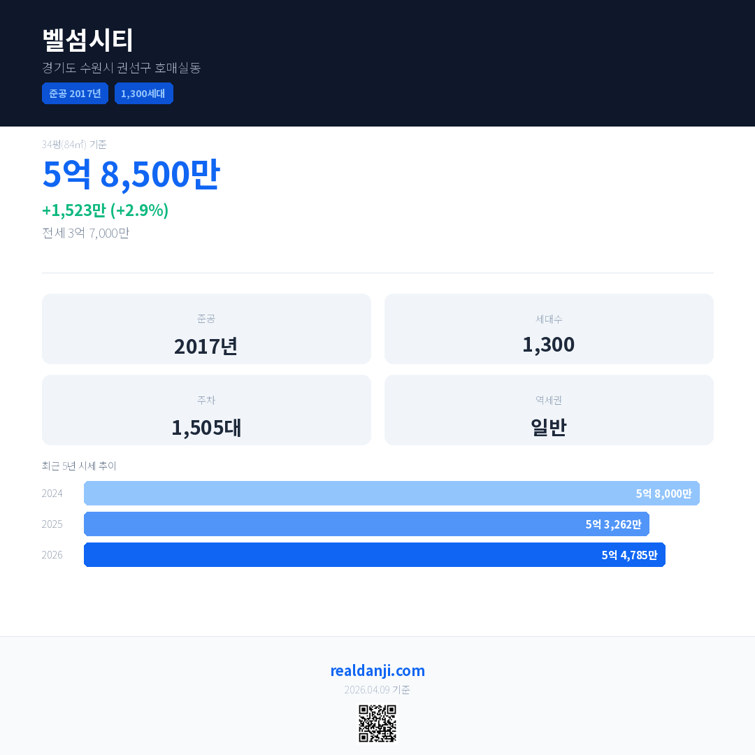 벨섬시티 최근 거래가는 5억 8,500만입니다. (2026-03)