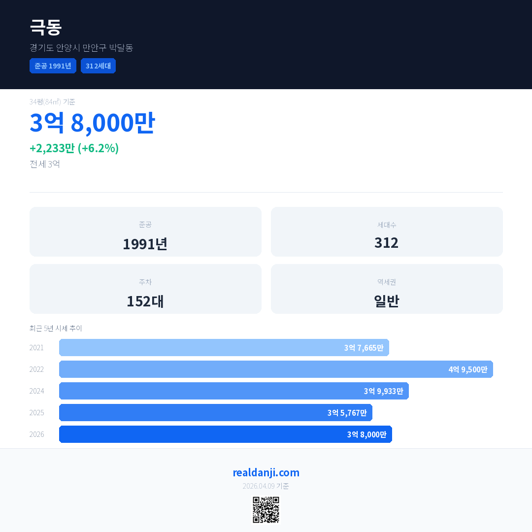 극동 국민평형 기준 2026년 평균 거래가는 3억 8,000만으로, 전년 대비 6.2% 상승 했습니다.