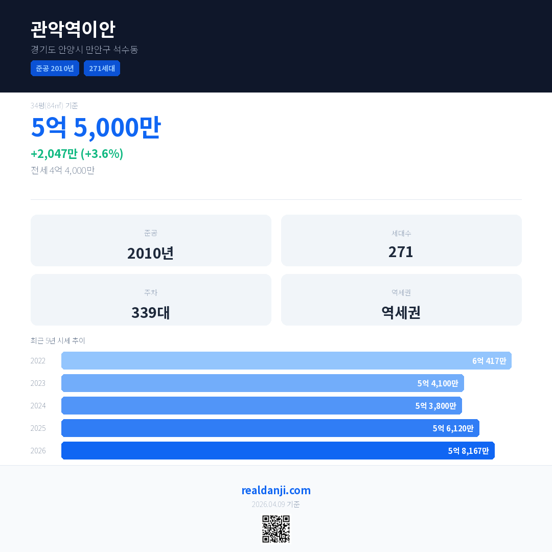 관악역이안 최근 거래가는 5억 5,000만입니다. (2026-04)