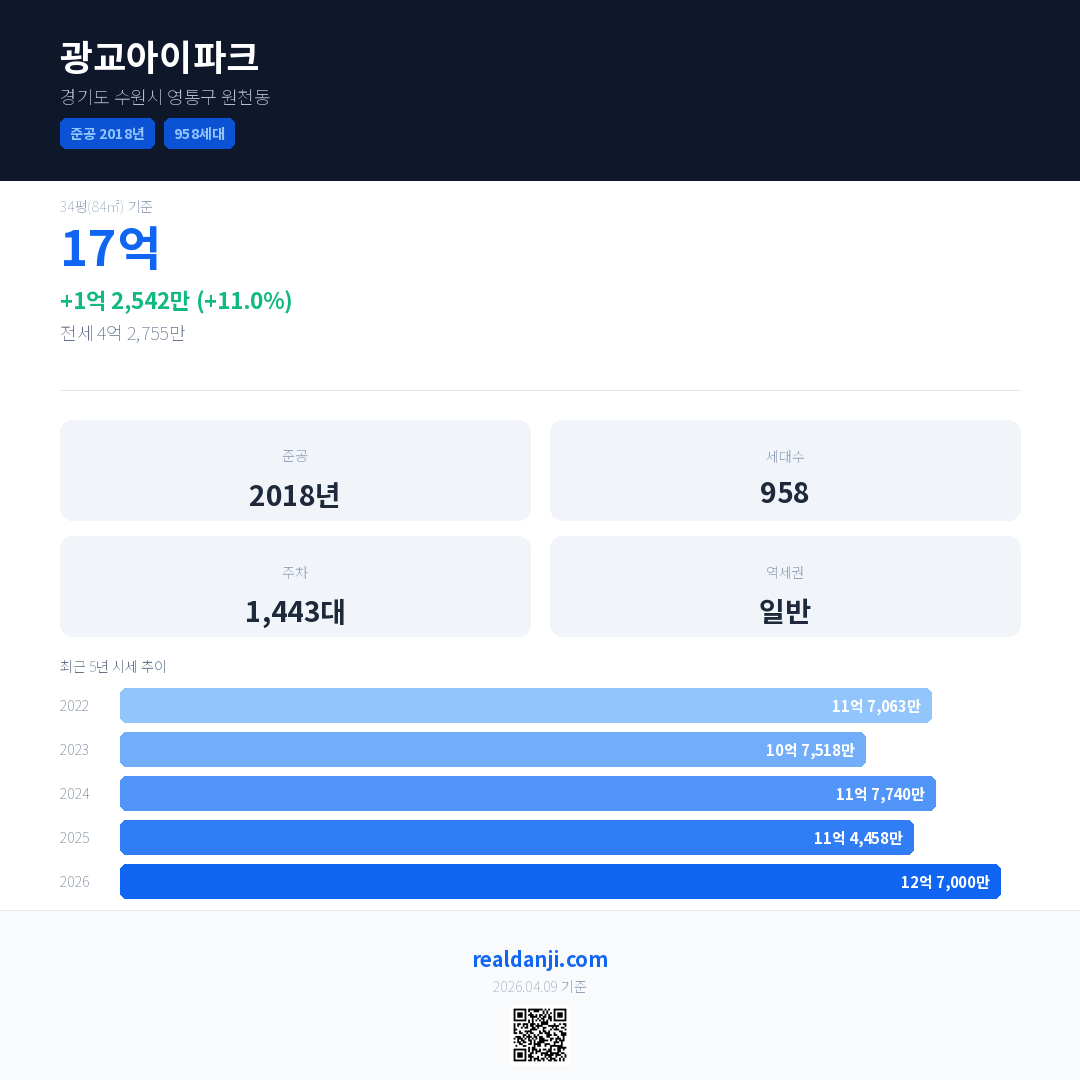 광교아이파크 최근 거래가는 15억 5,500만입니다. (2026-03)