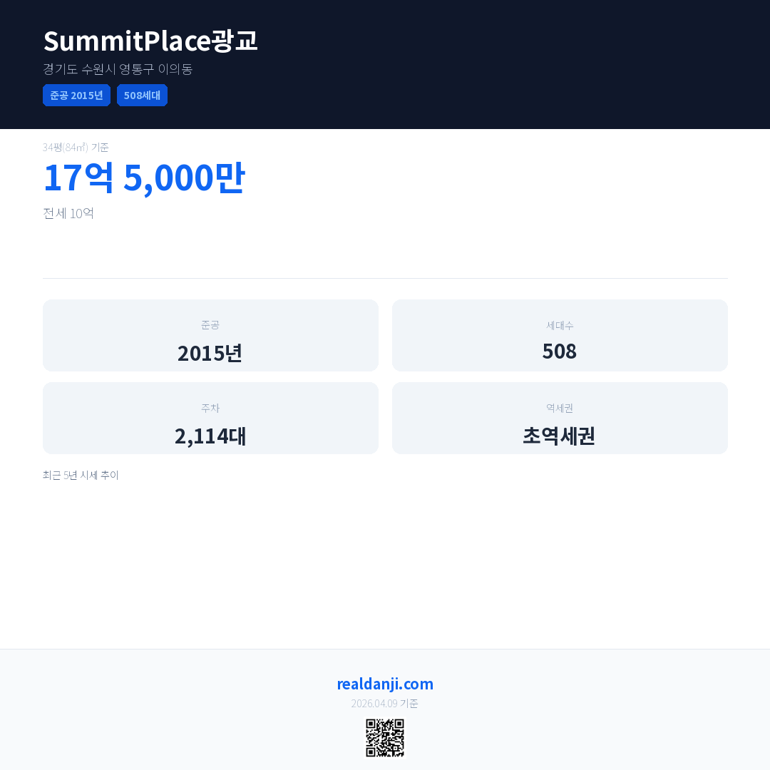 SummitPlace광교 최근 거래가는 17억 5,000만입니다. (2025-12)